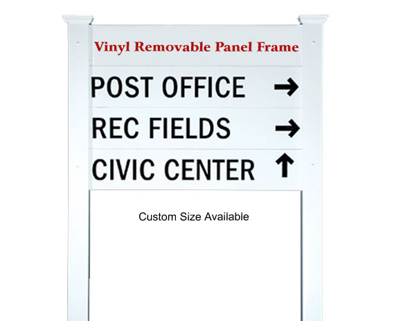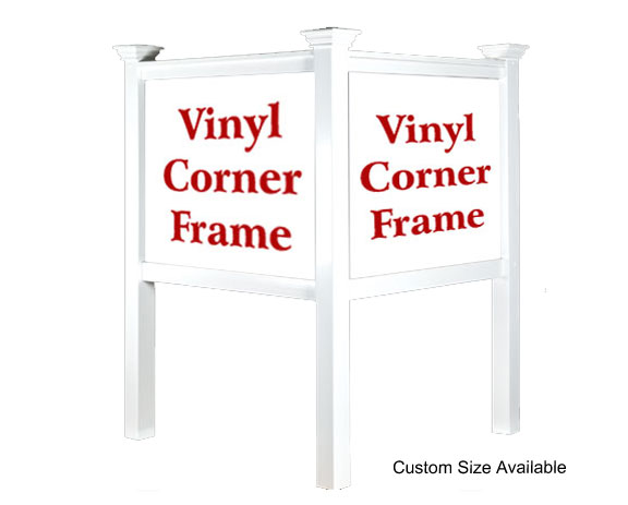 This sign kit includes two 4" square posts that are 8" in length, top T-rail, bottom standard rail, standard caps, and all necessary hardware. Our vinyl frames can be routed for 3MM (1/8IN), 6MM (1/4IN), 12MM (1/2IN), or 18MM (3/4IN) substrate thicknesses.